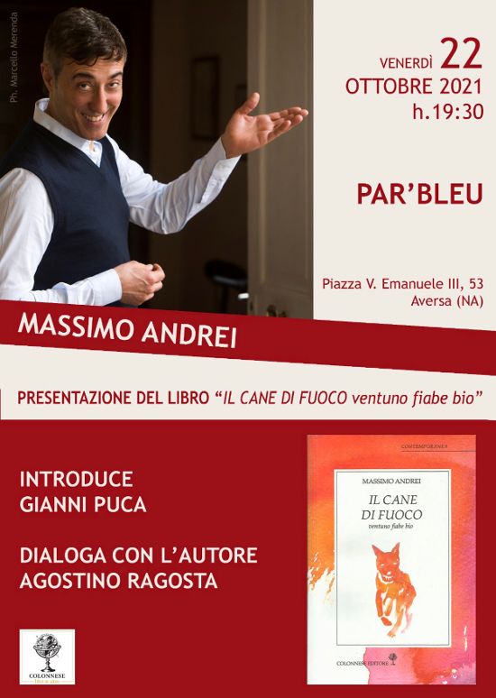 AVERSA. “Il cane di fuoco”. E’ il libro di Massimo Andrei, edito da Colonnese, che sarà presentato venerdì 22 ottobre (ore 19,30), presso la galleria d’arte Par’bleuibro. Alla kermesse culturale, oltre allo stesso autore, interverranno anche Agostino Nino Ragosta e Gianni Puca.