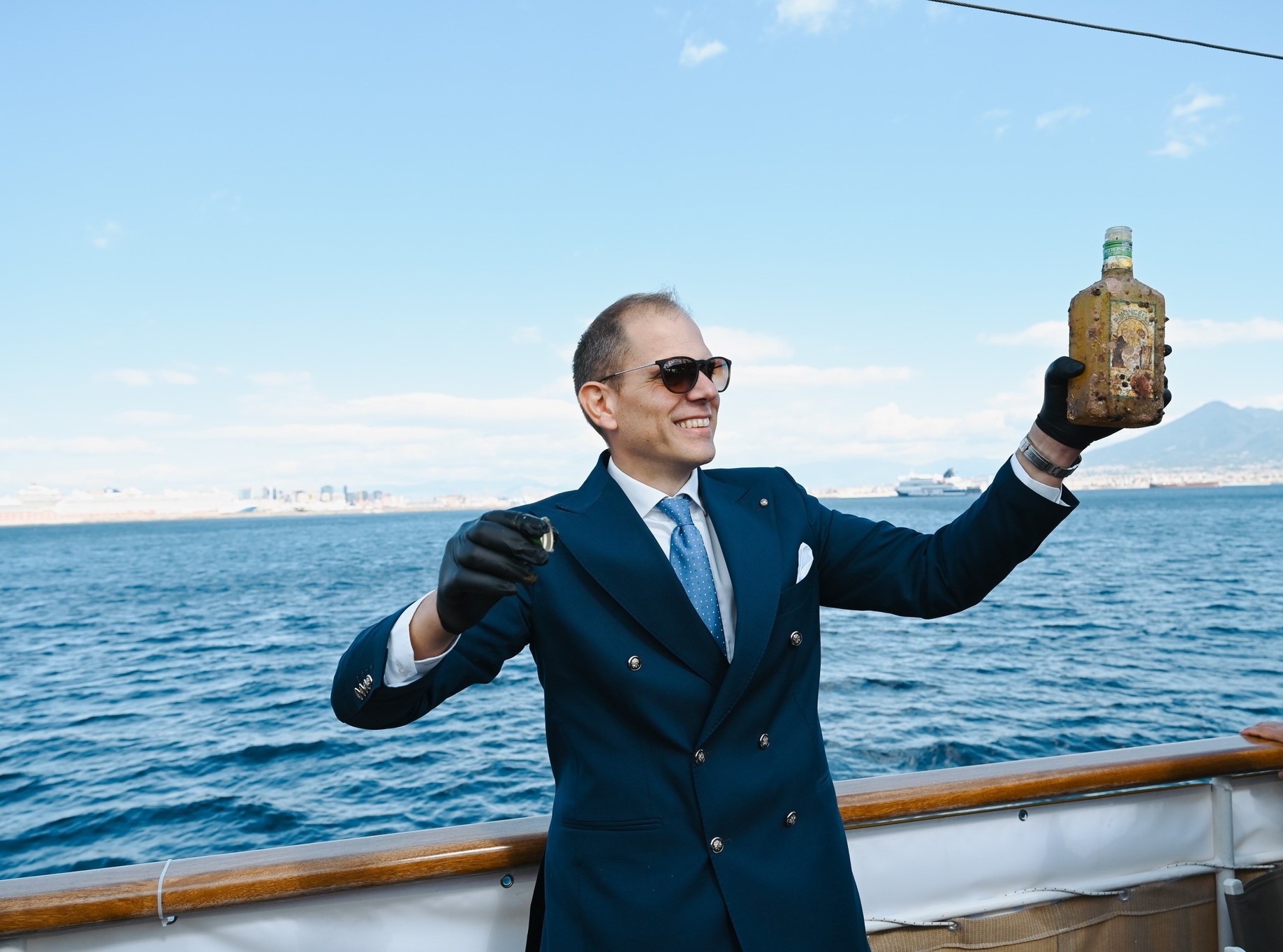 Ora, venerdì 3 ottobre 2025, sono state riportate a galla con un indimenticabile evento di emersione, tra applausi e indelebili emozioni di coloro che hanno avuto il privilegio di vivere il tutto a bordo della nave Patrizia, partita dal molo beverello con sosta nelle acque adiacenti Castel dell’Ovo. La Distilleria Petrone è stata la prima azienda in assoluto a livello mondiale a sottoporre nel 2021 una partita di bottiglie di liquore ad affinamento subacqueo.