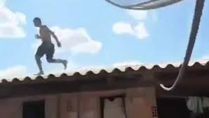 Saltando da un solaio all’altro, in un rischioso e disperato parkour.