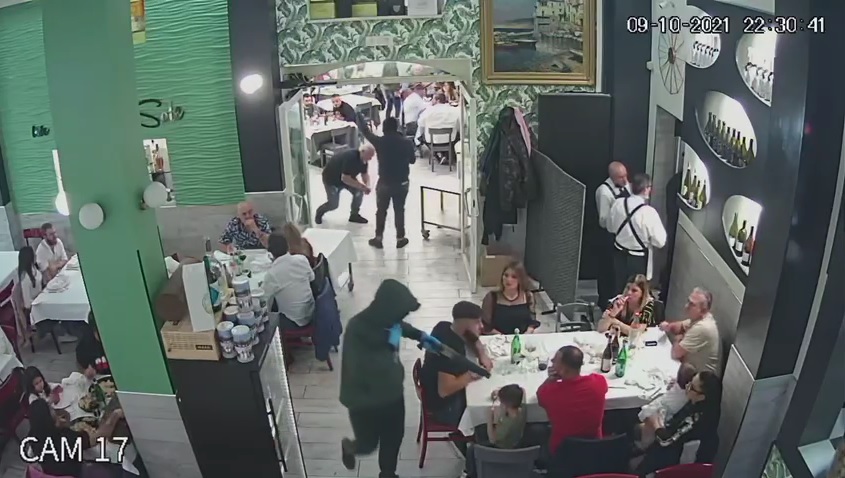Il triste episodio è stato immortalato dalle telecamere di sorveglianza del ristorante. Quello che sta suscitando un’ondata di sdegno e critiche sul web è la decisione dei malviventi di puntare le armi sulle tante famiglie presenti con bambini al seguito seduti a tavola per cenare. Un fucile e un mitragliatore puntati sui diversi bambini presenti a tavola.