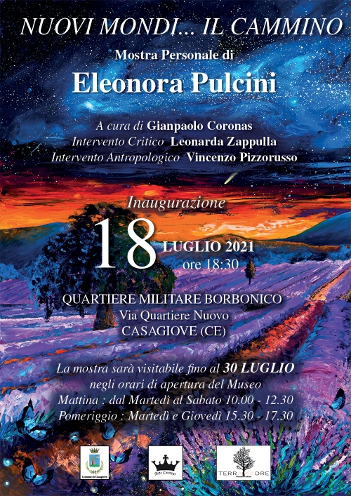 S’inaugura domani –  domenica  18 luglio 2021 – alle ore 18.30, presso il Quartiere Militare Borbonico di Casagiove (CE ), la mostra personale dell’artista Eleonora Pulcini.