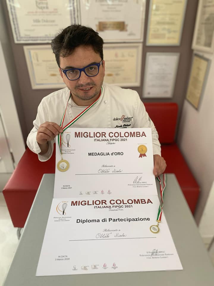 Tra i vari nomi quello del maestro pasticciere Nicola Olbiato è risultato, tra i vincitori della medaglia d’oro. La giuria ha apprezzato la sua colomba tradizionale chiamata Colomba Mamy. Un prodotto artigianale che gli è valsa la medaglia d’oro.