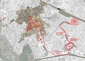 Attraversando la zona del Parco Padula e del Parco Michelangelo i polmoni verdi si congiungeranno poi, attraverso via Michelangelo, alla zona della villa comunale nei pressi dell’ex tribunale conducendo di fatto al centro storico in sicurezza.