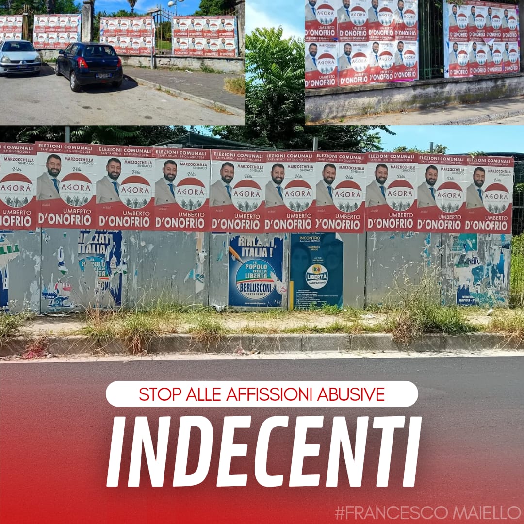 Cari cittadini, stamattina S.Antimo si è risvegliata imbrattata e offesa nel suo decoro da una quantità industriale di manifesti abusivi appartenenti alla lista Agorà, collegata alla coalizione di Nicola Marzocchella.