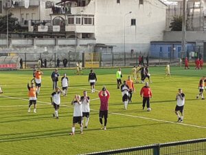 Frattese e Neapolis, reduci entrambe da una sconfitta nell’ultimo turno di campionato, si affrontano dopo 8 anni dall’ultima volta, campionato Eccellenza 2013-14. In quella occasione finì 4-0 e la Frattese vinse poi il campionato ed approdò in serie D. I nerostellati intendono riprendere subito la marcia in campionato, per non perdere altro terreno mentre la Neapolis cerca di uscire indenne dallo Ianniello. Floro Flores opera qualche cambio rispetto all’undici che ha affrontato l’Ischia, con D’Auria a difendere i pali al posto di De Lucia, Astarita per Aliperta, Cigliano dal 1’ al posto di Apredda ed il giovane Delle Curti per Meola. La Neapolis propone una squadra di giovani con Catena, Scuotto e Giorgio ai quali è affidato il compito di mettere in difficoltà la difesa frattese. Parte la gara e dopo 4’ Delle Curti si fa ammonire per un fallo su Catena e sulla conseguente punizione Scuotto colpisce la parte alta della traversa. Di fatto i pericoli corsi da D’Auria si fermano qui. Catinali e Cigliano con un ispiratissimo Grieco disegnano manovre offensive servendo sugli esterni Armeno e La Pietra sulla parte sinistra dell’attacco nerostellato e Delle Curti ed Orlando sull’out destro. Al 6’ Prisco, all’ 8’ Orlando dal limite con Bardet attento e poi ancora Prisco all’ 11 su lancio di Catinali s’invola verso la porta e di sinistro colpisce l’incrocio dei pali. Fioccano i tiri, Cigliano al 23’ ci prova dal limite e poi Orlando al 37’ sfiora il palo con un sinistro a giro. Il gol è nell’aria ed arriva al 39’. Azione molto ben congegnata da Catinali che smista per Delle Curti che dalla destra serve al centro Grieco che si inserisce alla perfezione e batte Bardet con un tocco di destro al volo. Passano appena 2 minuti e le parti si invertono, Grieco si incunea in area, salta il diretto avversario e la mette al centro dove irrompe Delle Curti che fa 2-0. Nel II t. la Frattese, affamata di gioco e gol, non da tregua alla malcapitata Neapolis. E’ il 53’ quando un travolgente Grieco serve La Pietra con un filtrante perfetto, l’ala nerostellata controlla bene il pallone in corsa e di esterno destro, di giustezza, fa 3-0. Poi è la volta di Cigliano ad assumere il ruolo di assist-man al 55’, l’estroso mancino lancia ancora La Pietra che mette a sedere Bardet e di interno destro mette a segno la sua personale doppietta. E’ un monologo nerostellato e si aspetta il gol del bomber Prisco che arriva, puntuale, al 60’. Cigliano per Armeno sull’out sinistro, cross verso il dischetto del rigore dove, ben appostato, Prisco batte Bardet con un sinistro al volo. A sfiorare il gol ancora Riccio ed Armeno ed al 78’ un gol d’autore di Improta, subentrato a Prisco. Da sottolineare, in occasione del gol, la bellissima, insistita azione di Vitale, subentrato a Grieco, che dopo aver saltato un paio di avversari, serve Improta sul vertice destro dell’area di rigore della Neapolis, controllo perfetto e tocco vellutato di sinistro verso il palo alla destra di Bardet : chapeuax. La Neapolis è sparita ormai dal campo e subisce anche il settimo gol ad opera di uno scatenato Orlando che all’88’ mette il suo sigillo dopo uno scambio velocissimo con Cigliano, il talentuoso attaccante entra in area e batte il portiere ospite con un forte tiro di destro sotto la traversa. Finisce la partita dopo 2 minuti di recupero e poi tutti i giocatori nerostellati sotto la tribuna a raccogliere il meritato applauso. Troppo forte la voglia di riscatto della Frattese e troppo evidente e marcata la differenza tecnica tra i tanti giocatori nerostellati che hanno militato in categorie superiori rispetto ad una Neapolis apparsa subito intimorita dalle ottime giocate della squadra di casa. La Frattese raggiunge quota 10 punti e per stasera si gode il primo posto in classifica in attesa delle gare di domani.